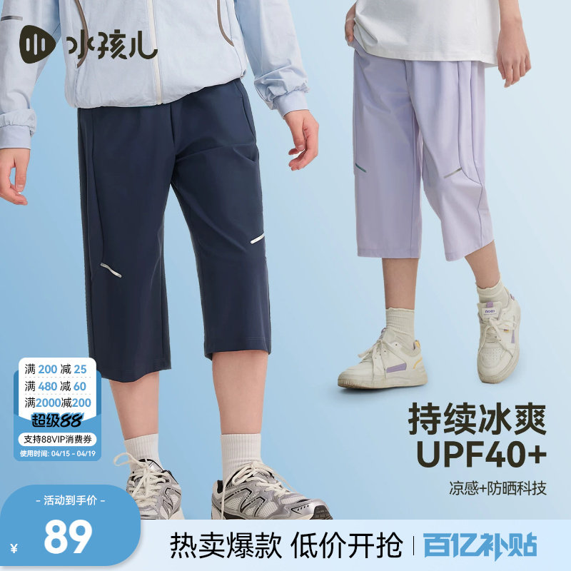 水孩儿童装七分裤女童2026夏季薄款防晒凉感裤子男童弹力透气短裤