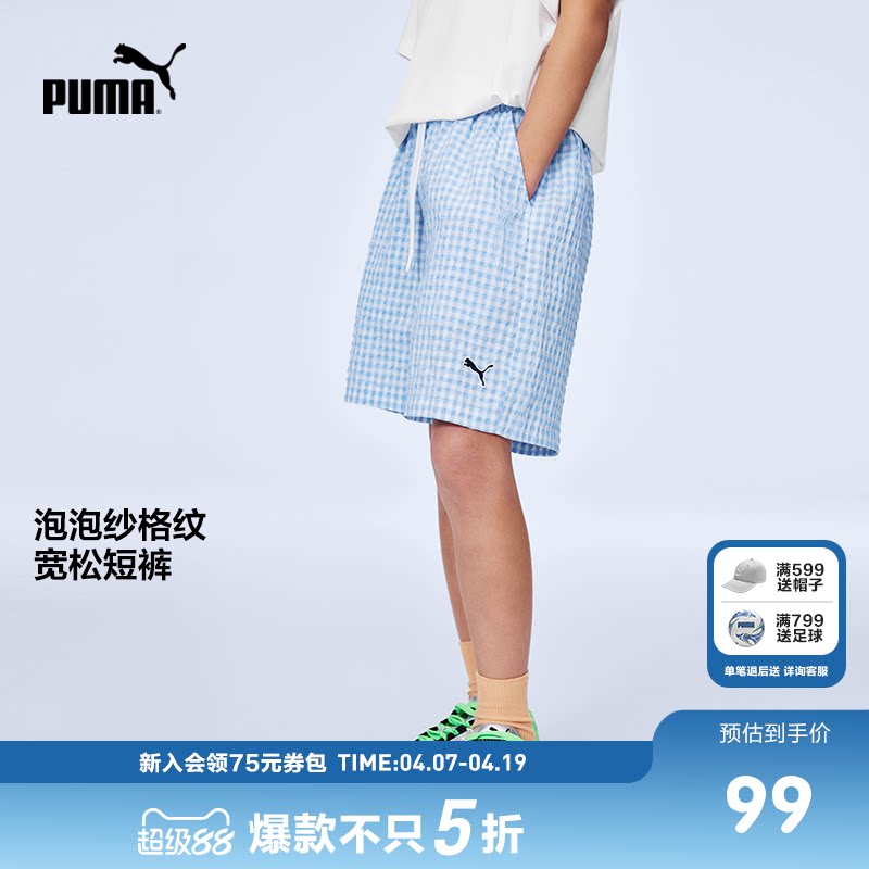 PUMA彪马童装26春夏儿童短裤男童女童运动中裤衬衫直筒网格裤子