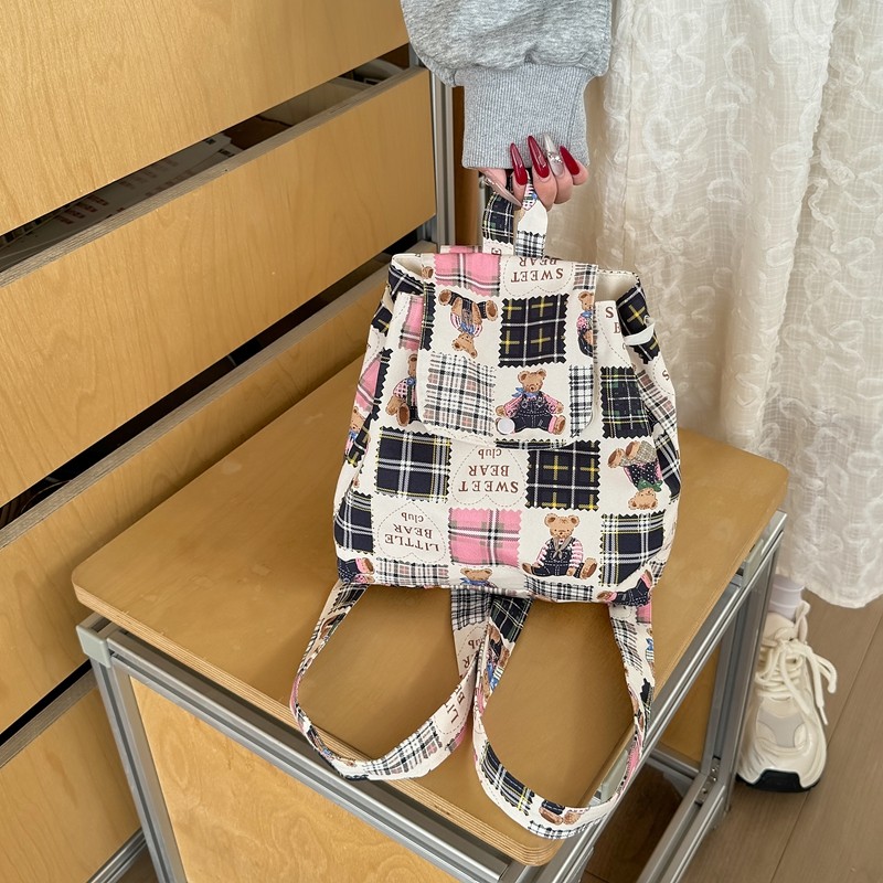 2025新款韩系小熊印花双肩背包甜美女百搭包包大容量高级感双肩包