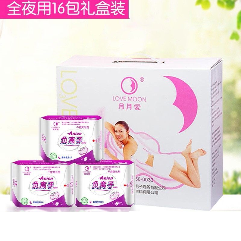 16包夜用月月爱负离子卫生巾套装月朗国际日夜用护垫纯棉姨妈巾