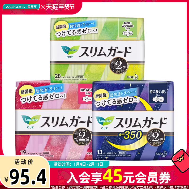 屈臣氏乐而雅零触感丝薄日夜用卫生巾套装姨妈巾全周期呵护60片
