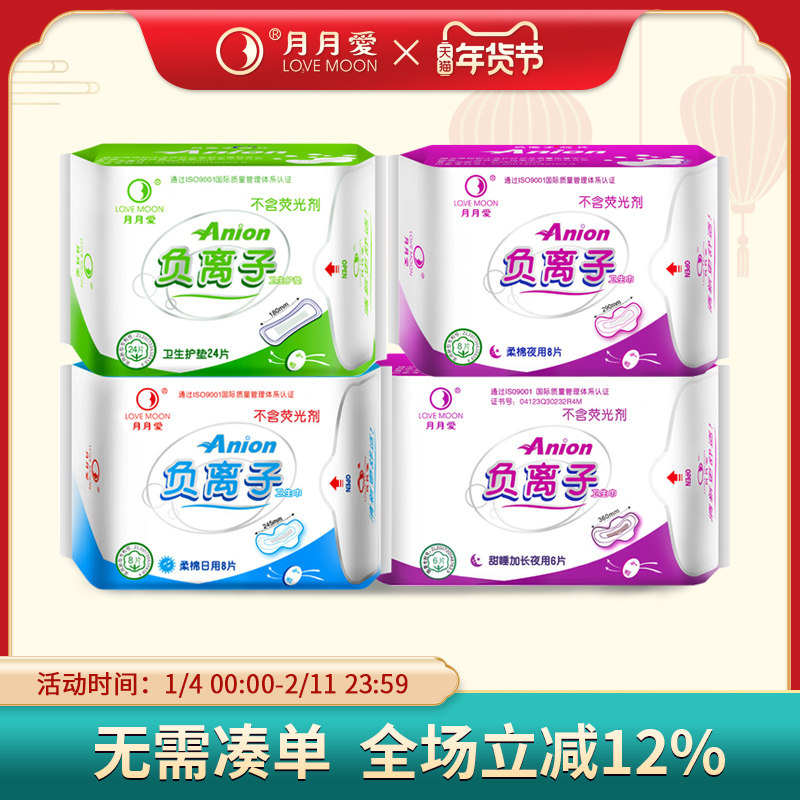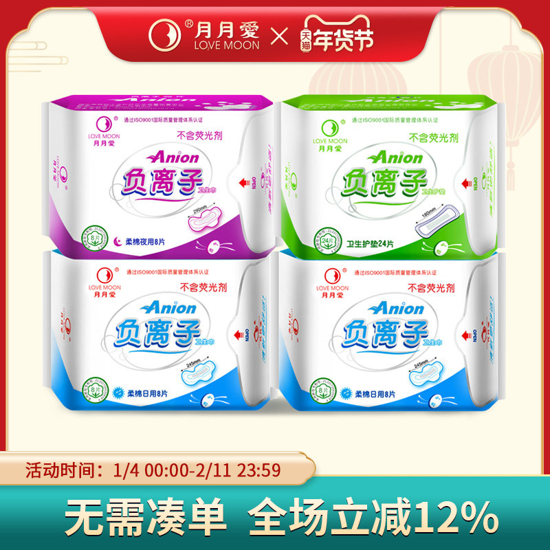 月朗授权 月月爱负离子卫生巾套装10日用+10夜用正品正品柔棉干爽