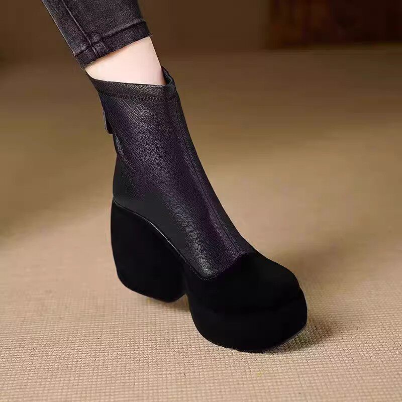 10cm高跟靴子软皮瘦瘦靴2025秋冬新款短靴洋气高级坡跟厚底马丁靴