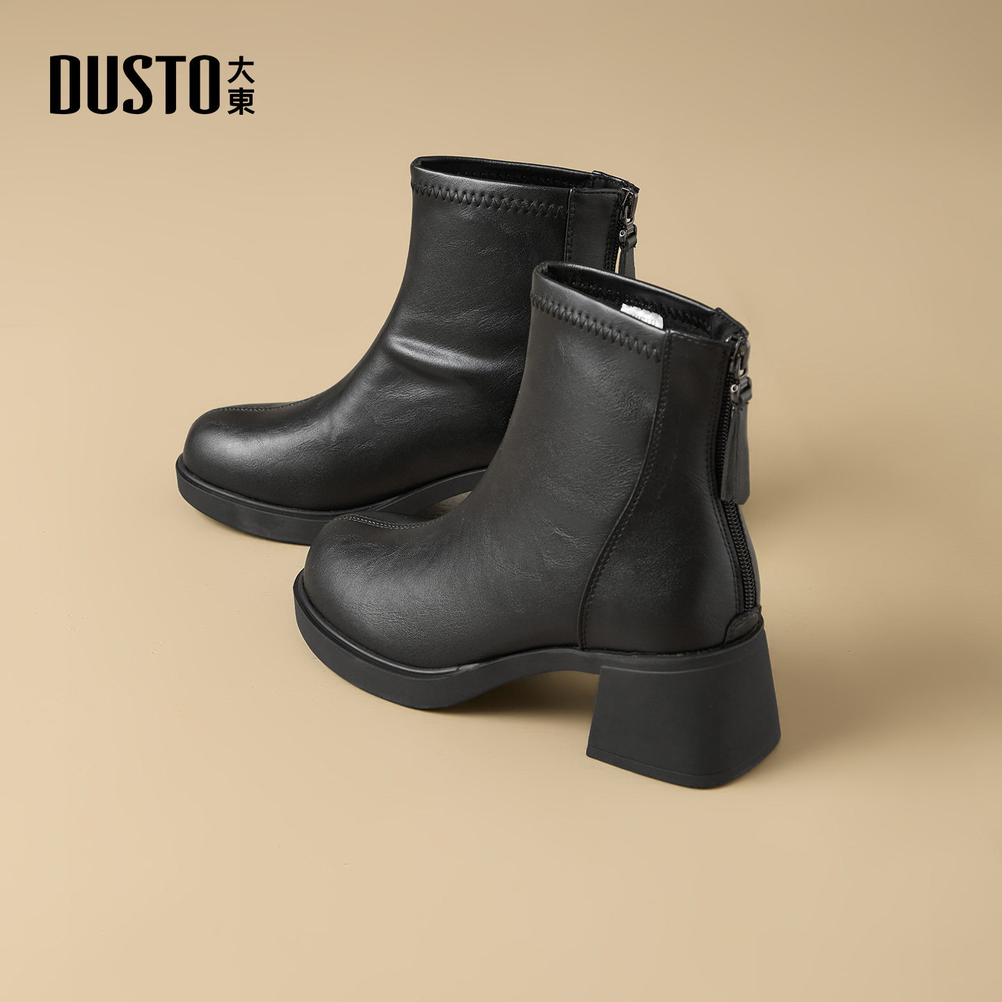 大东官方粗跟切尔西靴子短靴女2025新款冬季巨好看粗跟瘦瘦靴女靴