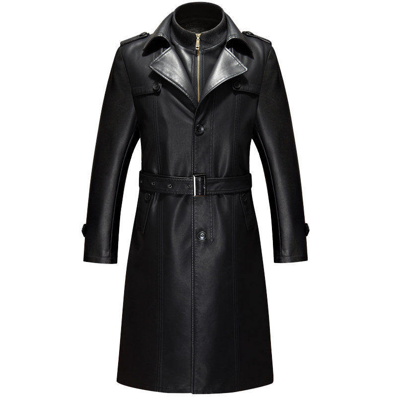 泽yp外贸皮大衣男长加肥加大码长款过膝男皮衣风衣男外套免烫处理