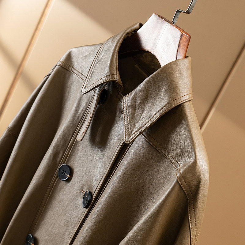 - 真皮皮衣女长款风衣