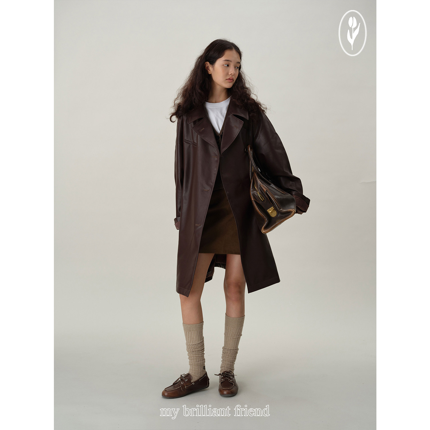 露露酱NN~「深棕承光」气质显瘦长袖宽松皮衣风衣外套24PU086