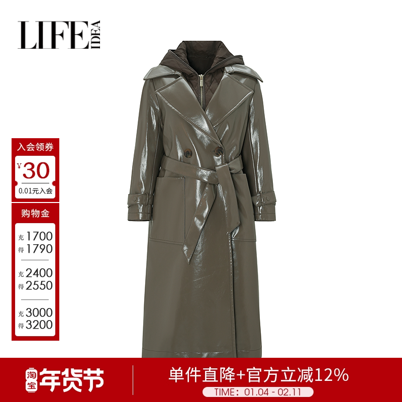 莱芙艾迪儿女装冬个性棉服女光滑皮衣风衣拼接羽线内胆长款羽绒服