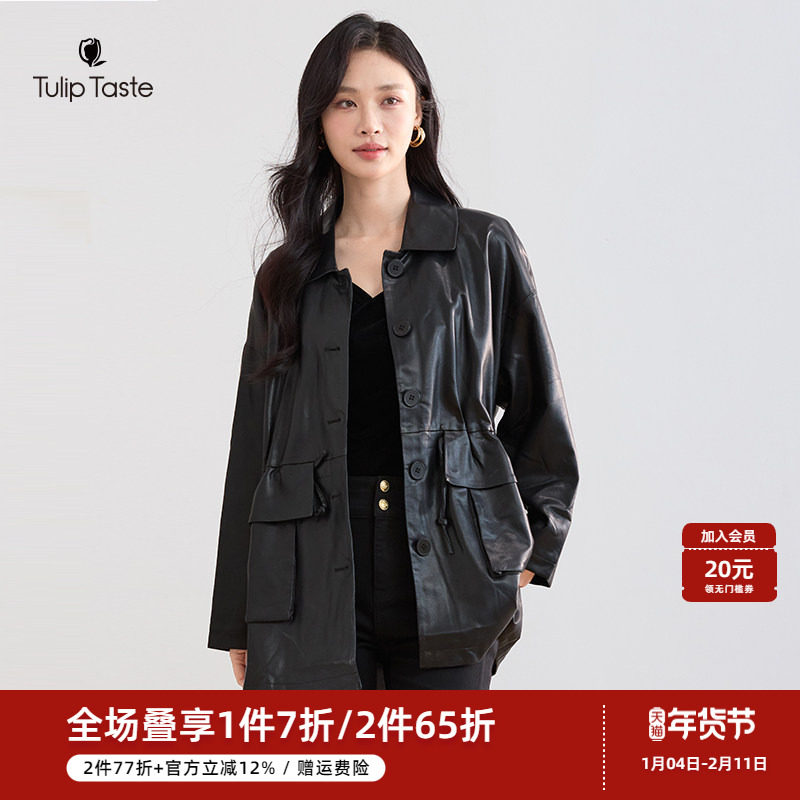 2026春秋新款进口羊羔泡皮重工软面绵羊皮真皮皮衣风衣外套女显瘦