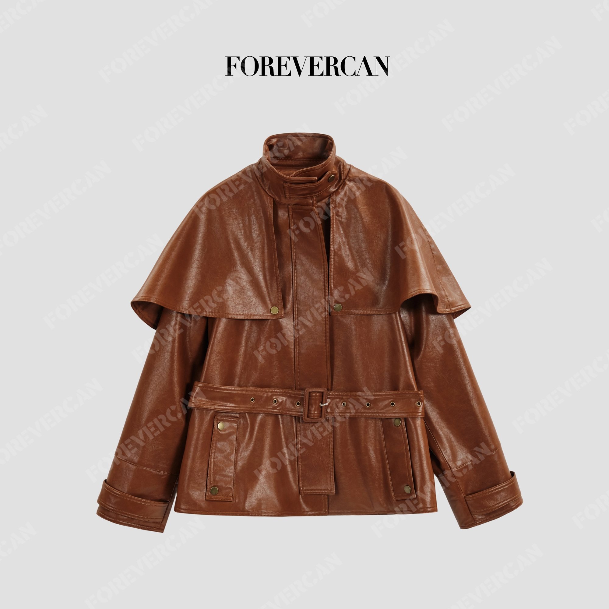 Forevercan女装2025新款海德堡立裁廓形斗篷式皮衣风衣外套