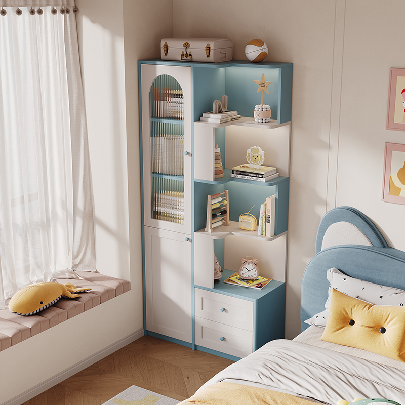 儿童房书柜床头柜一体组合卧室床边置物柜小户型落地转角书架定制