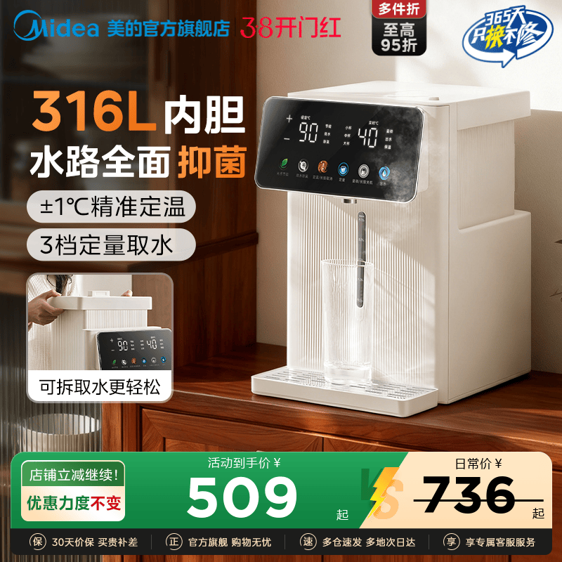 美的小魔方plus电热水壶316L不锈钢恒温即热饮水机大容量电热水瓶