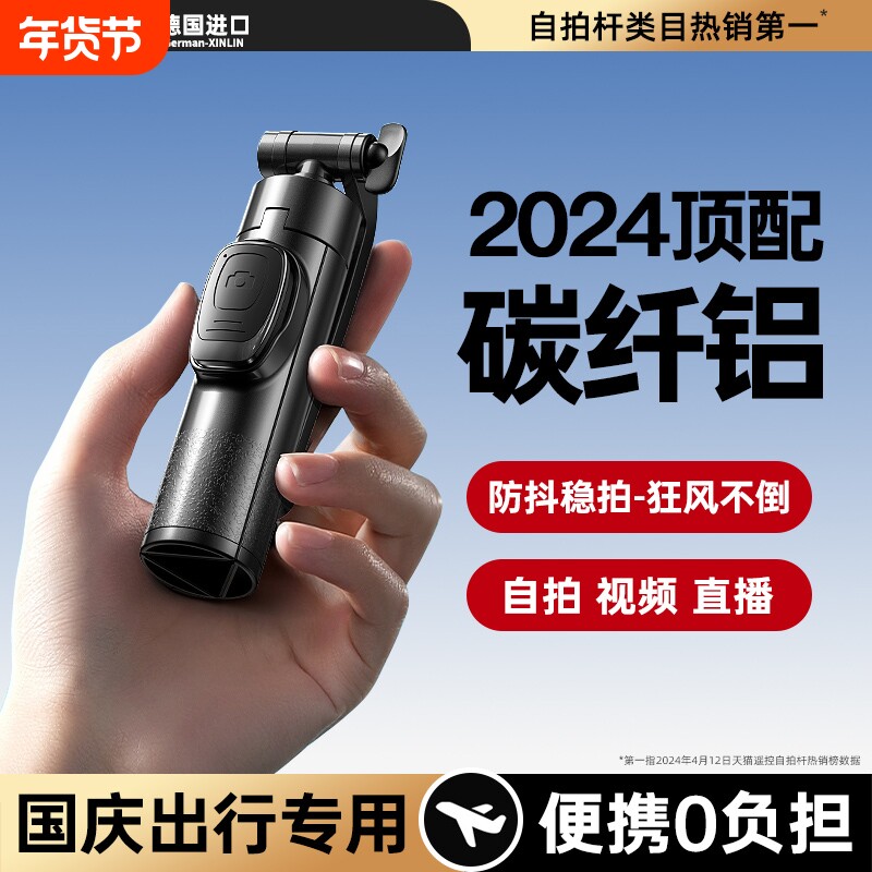 2024新款自拍杆支架三脚架迷你旅游便携360度旋转自拍神器手机遥控无线防抖拍摄蓝牙手持直播适用苹果华为