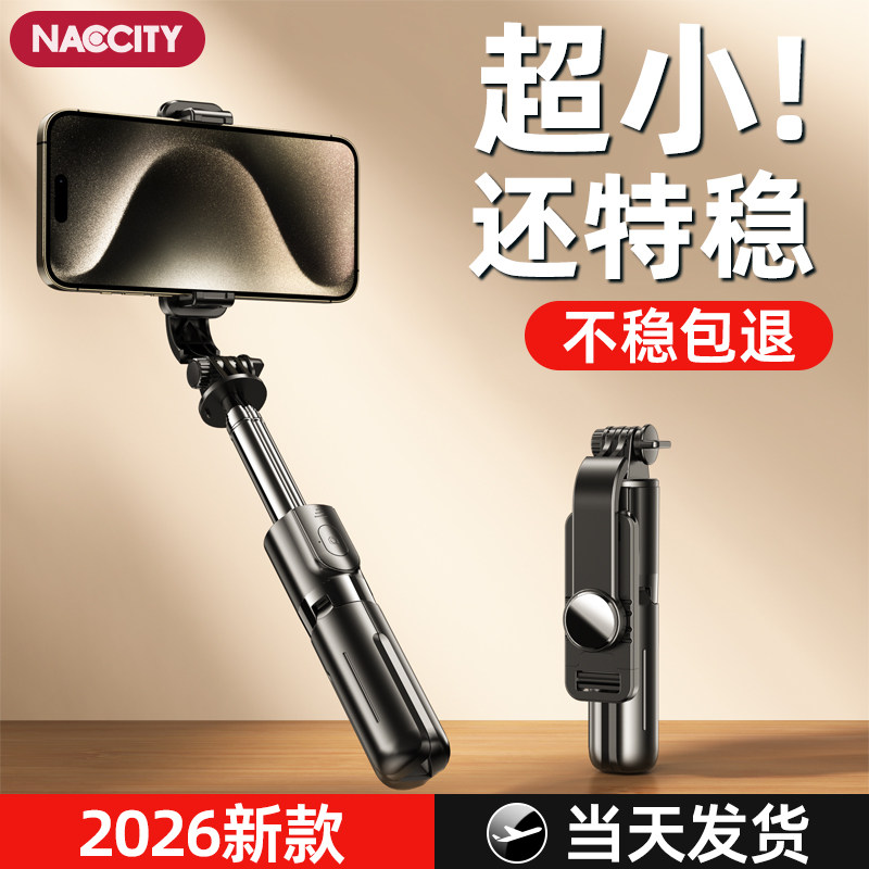 NACCITY自拍杆旅游便携手机支架2025新款户外旅行拍照神器迷你2024通用360度旋转落地三脚架适用苹果华为小米