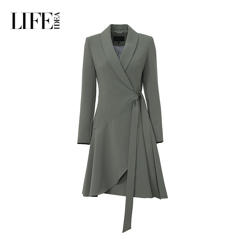 莱芙艾迪儿时尚通勤收腰版型秋冬季女士职场高级气质不规则连衣裙