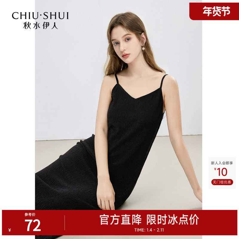 #Sisjuly# 黑美人气质优雅设计感贝壳褶皱沙漏型挂脖吊带连衣裙女