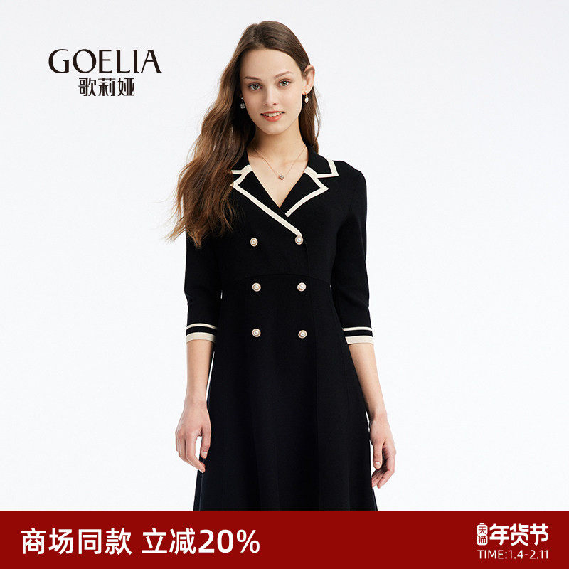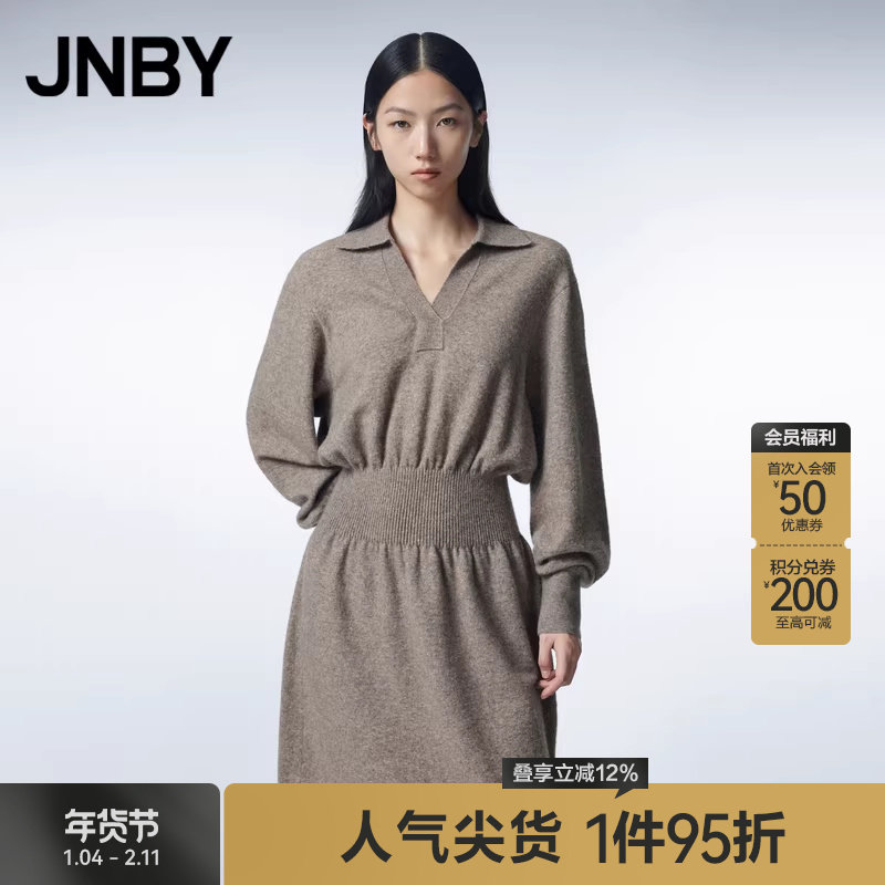 JNBY/江南布衣春秋款针织连衣裙X型翻领收腰裙女气质简约风通勤女
