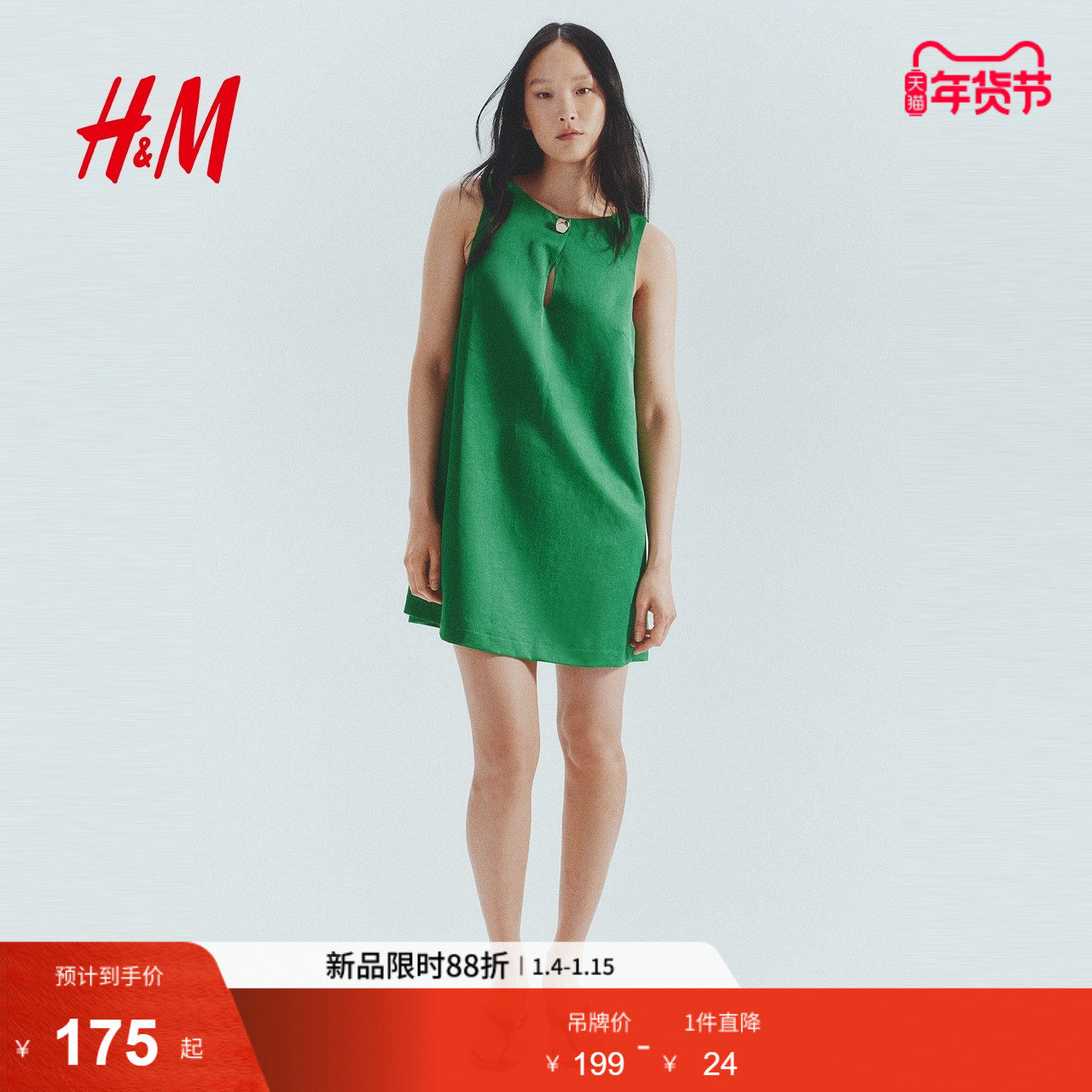 HM女装连衣裙冬季气质通勤无袖宽松a字版型连衣裙1290380