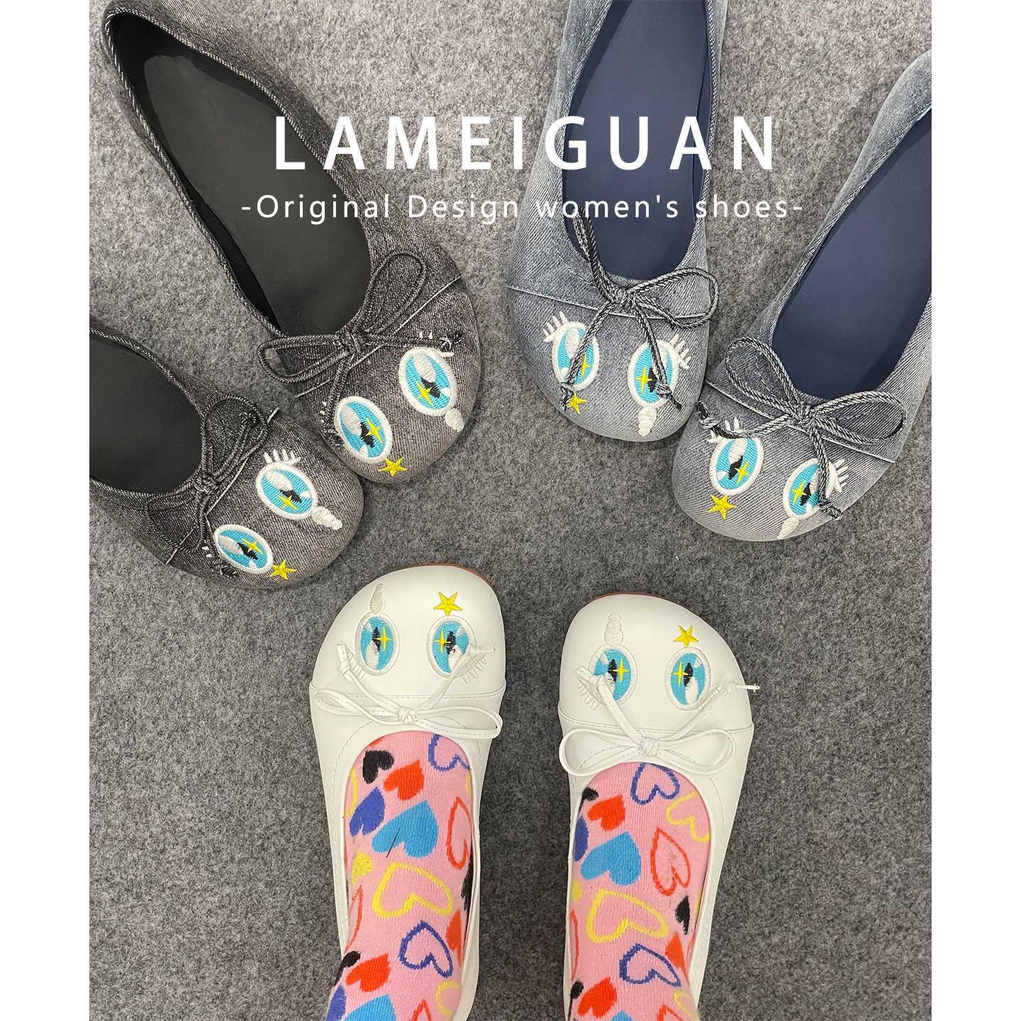 可爱星星眼~刺绣蝴蝶结芭蕾单鞋女秋2025新款甜美圆头浅口平底鞋