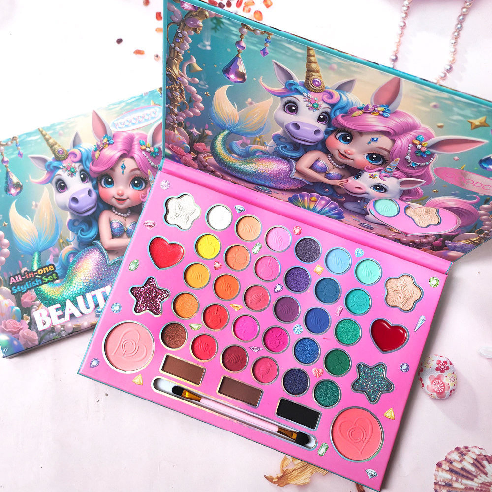 41色独角兽梦幻眼影盘舞台亮晶晶珠光哑光高光修容唇彩一体眼影盘