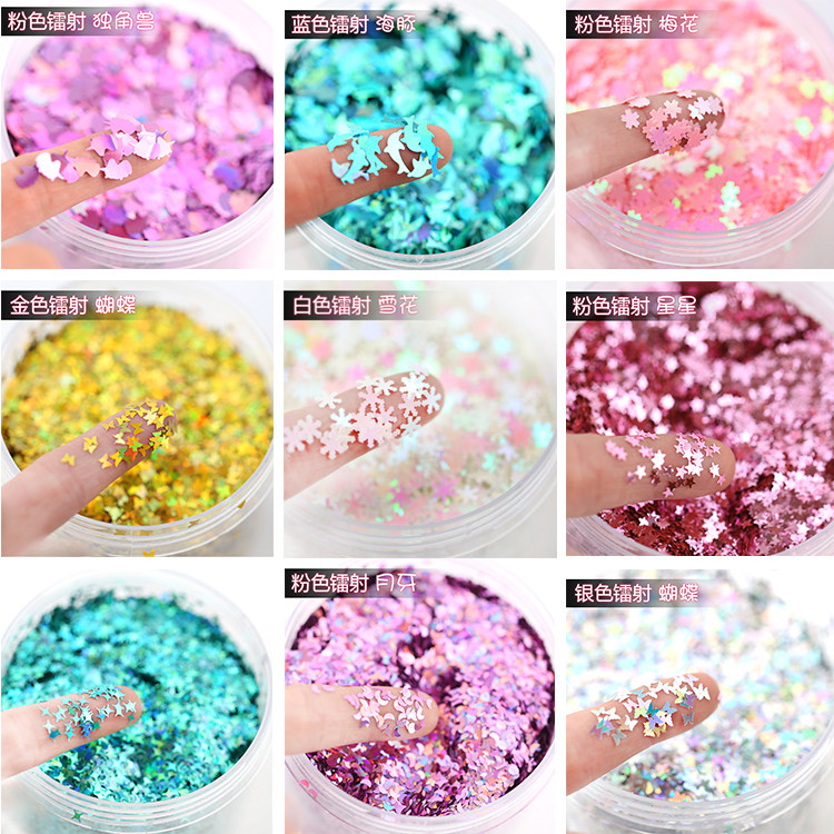 镭射闪星独角兽十字四角星闪粉亮片流麻眼影葱粉流沙麻将手工diy