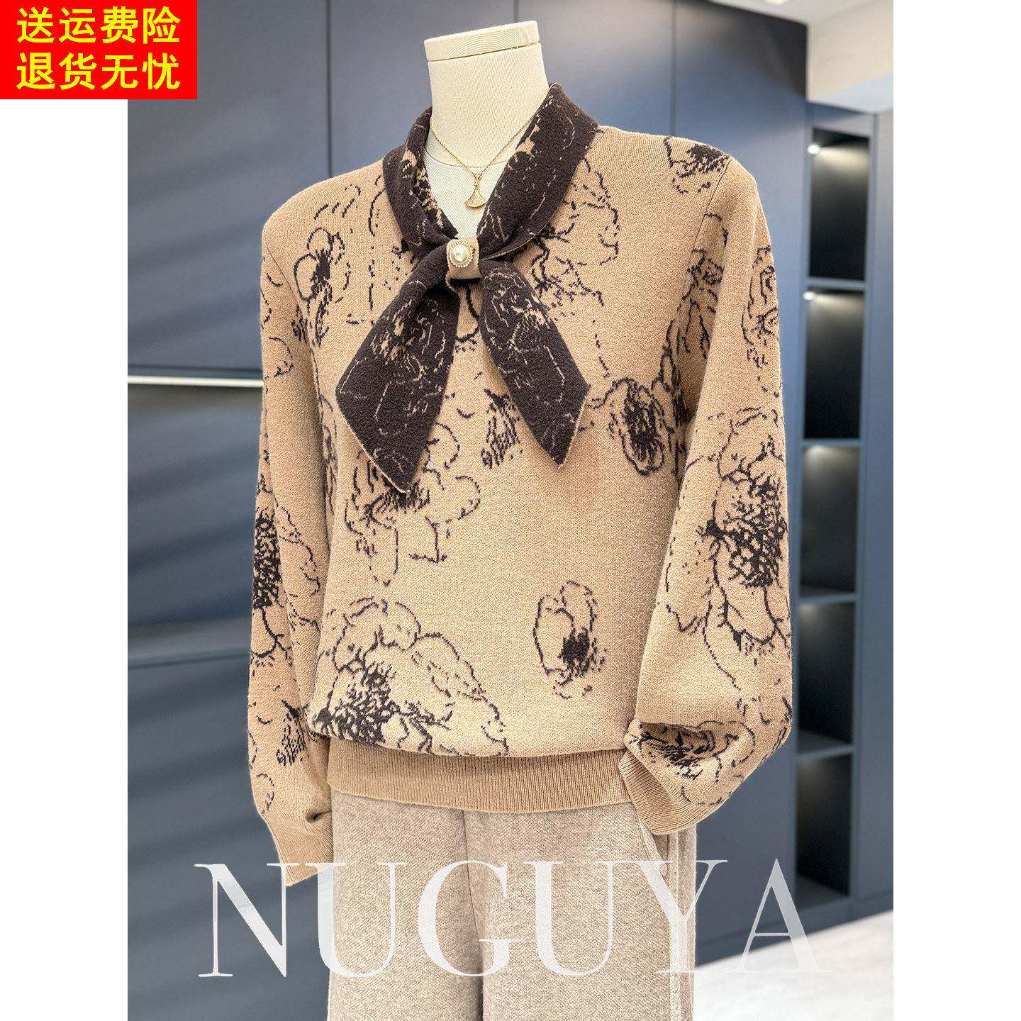 中式国风妈妈装毛衣女套头冬装新款上衣气质百搭中老年针织衫打底