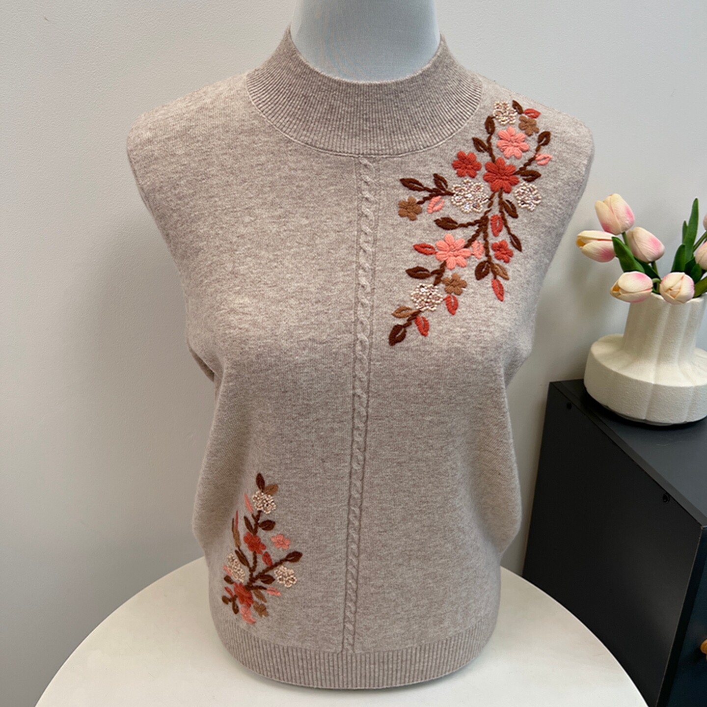 妈妈装半高领仿貂毛花朵冬季毛衣中老年女装宽松型套头针织打底衫