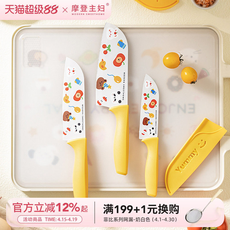 摩登主妇熊猫水果刀家用婴儿宝宝辅食刀切菜刀专用刀具套装陶瓷刀