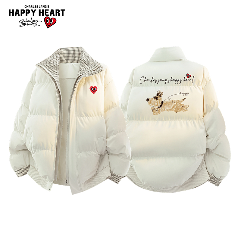 查尔斯桃心美式花卉字母印花棉服男冬季新款潮牌百搭防寒情侣棉衣