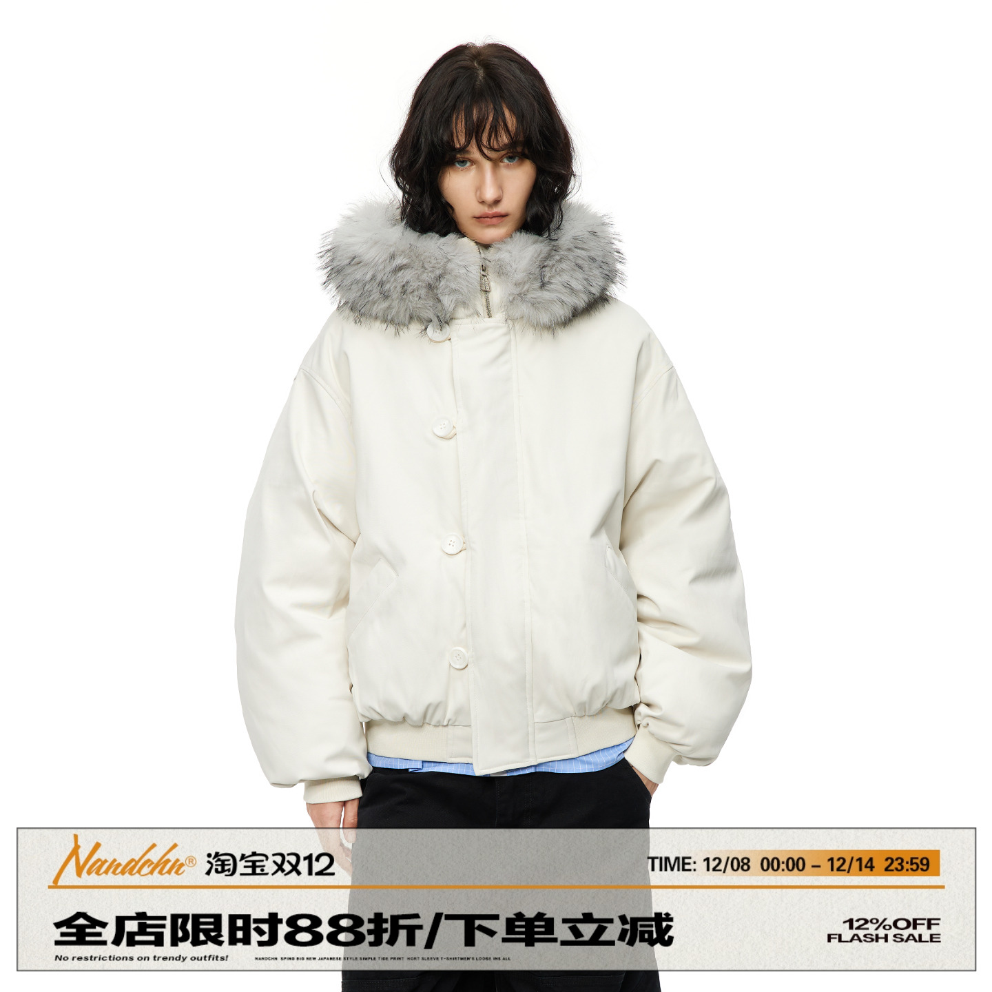 TGNS浅色大毛领ma1派克服女冬季座山雕工装棉服情侣棉衣厚外套男