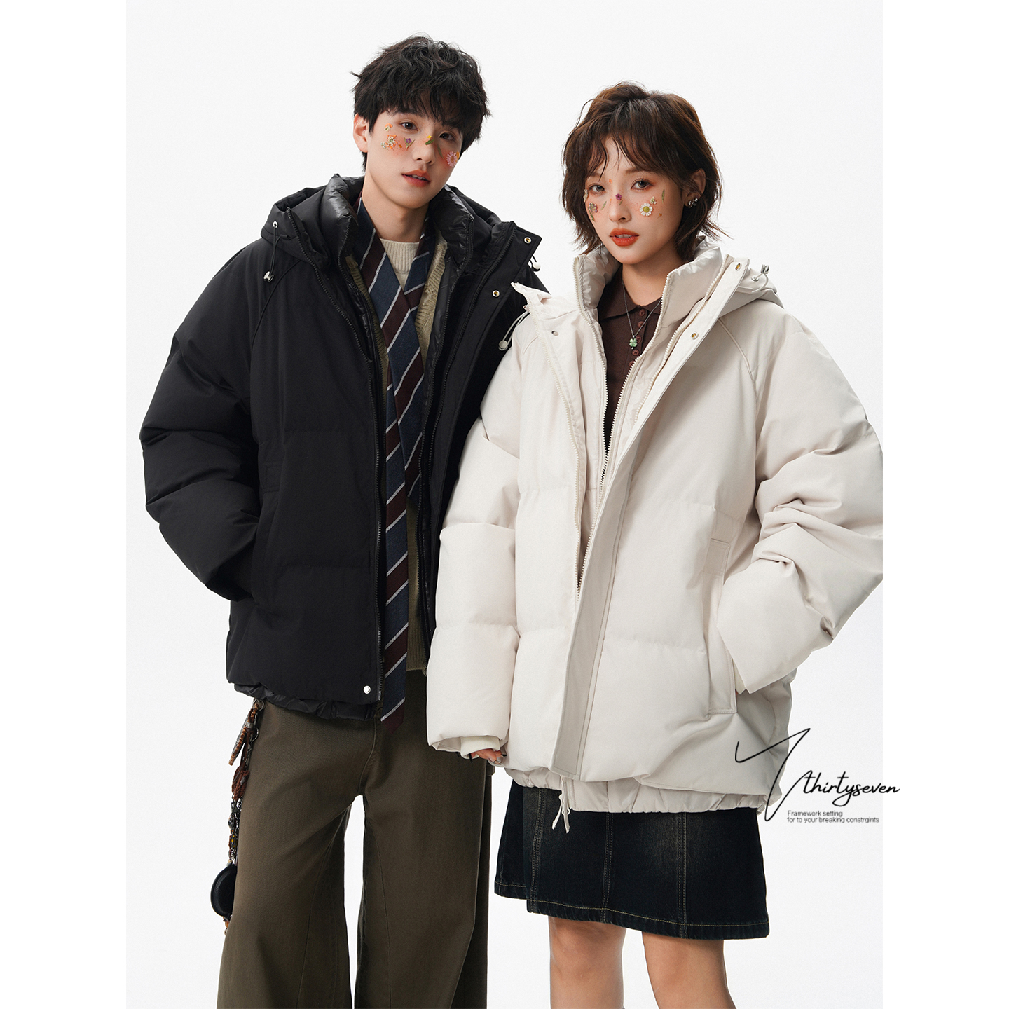 日系ins潮牌纯色立领羽绒服男女2025冬季新款加厚面包服情侣棉衣