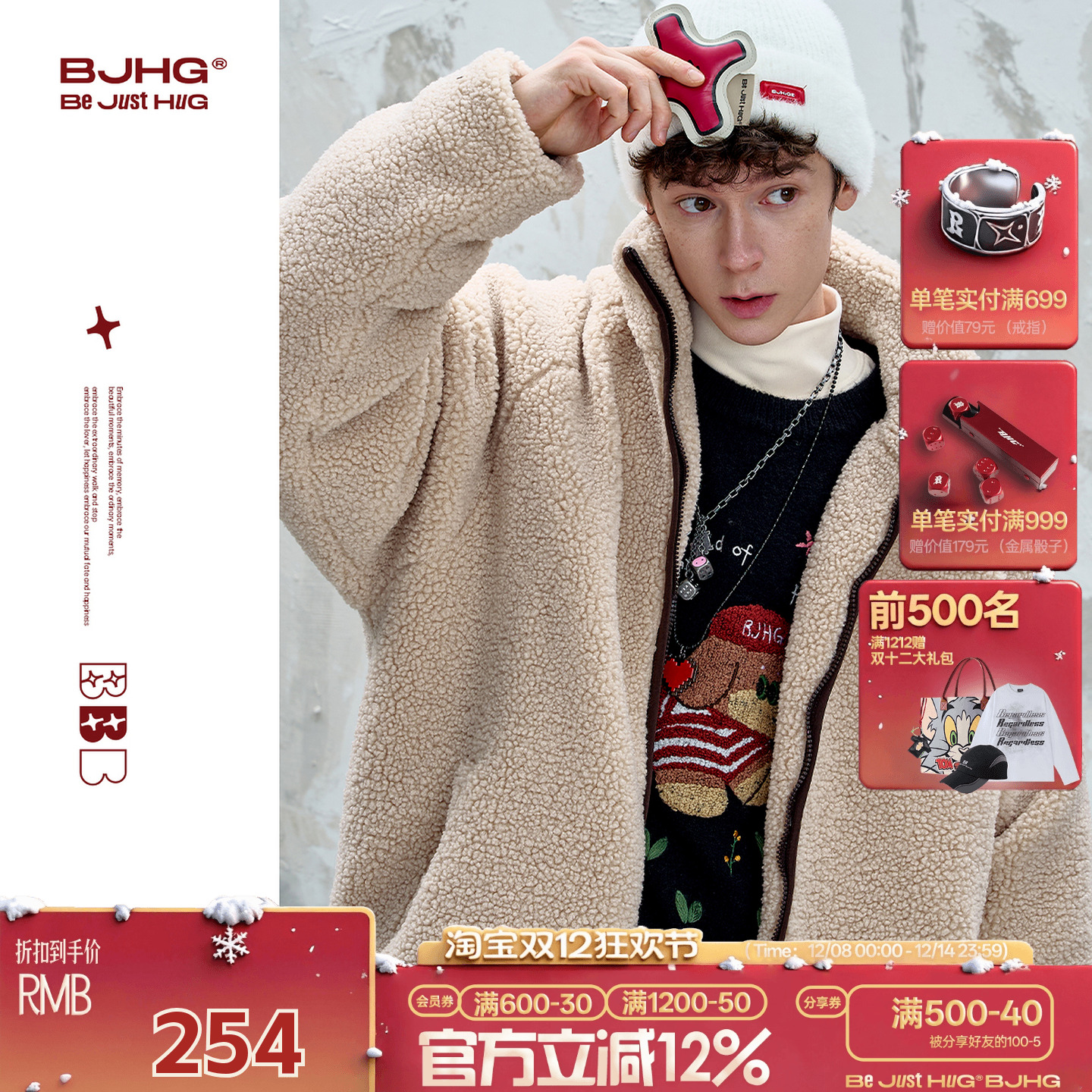 BJHG不计后果新款贴贴羊羔绒棉服外套冬装男款潮牌情侣棉衣上衣女