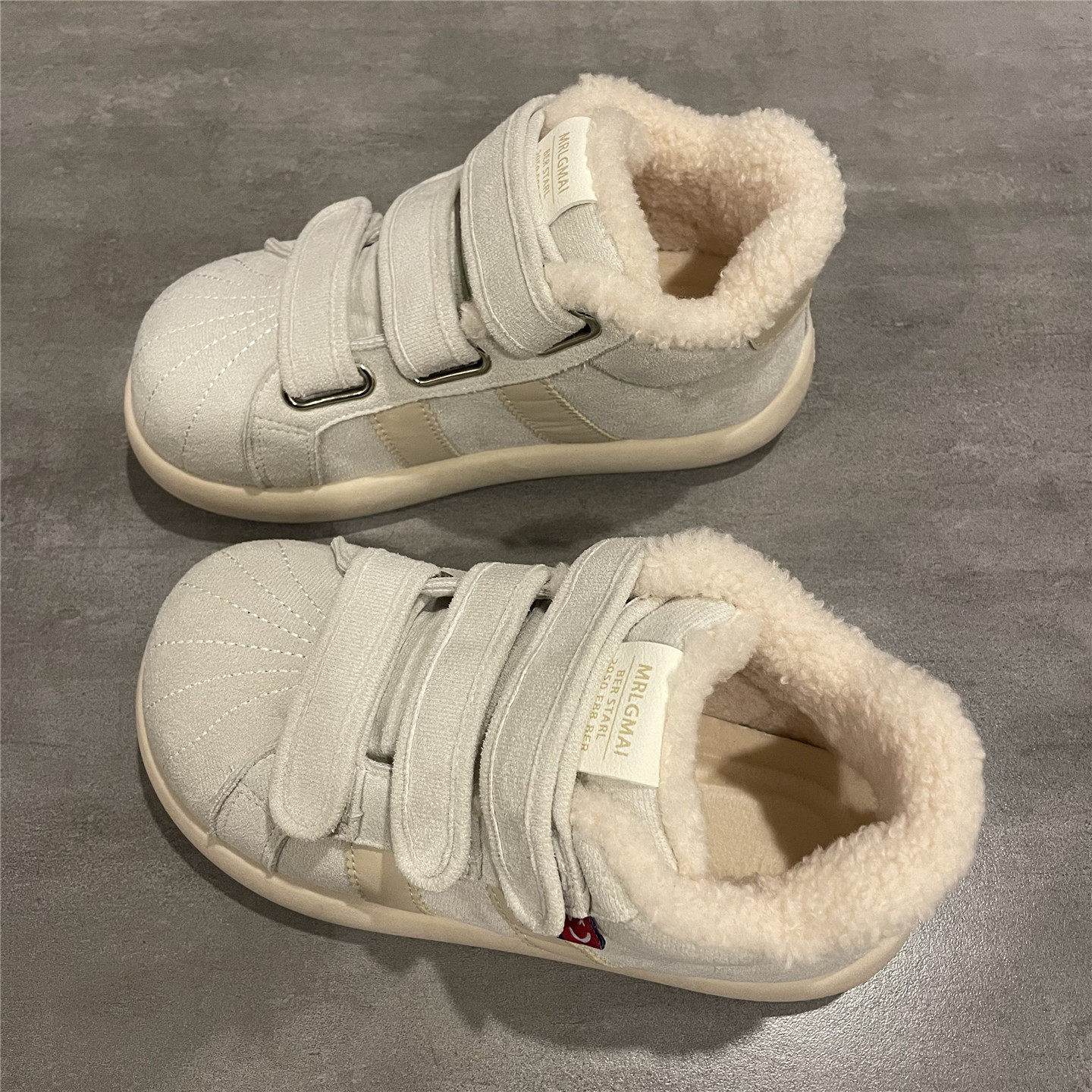 细细条 韩版复古ins秋冬季加绒保暖勃肯鞋女学生百搭平底豆豆棉鞋