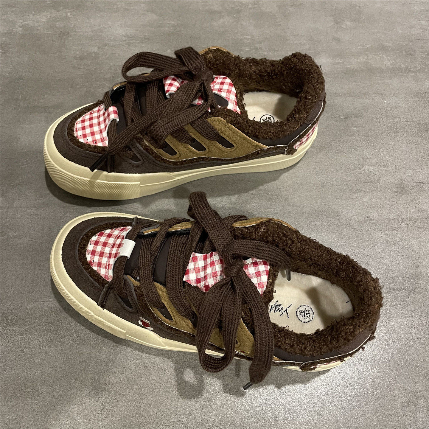 七七主人家棕色复古板鞋女冬季加绒保暖棉鞋女学生百搭面包鞋子女