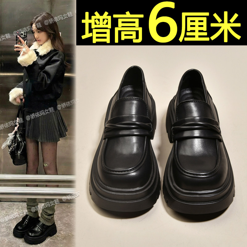 松糕厚底乐福鞋女2025新款秋冬小个子增高黑色小皮鞋英伦风单鞋