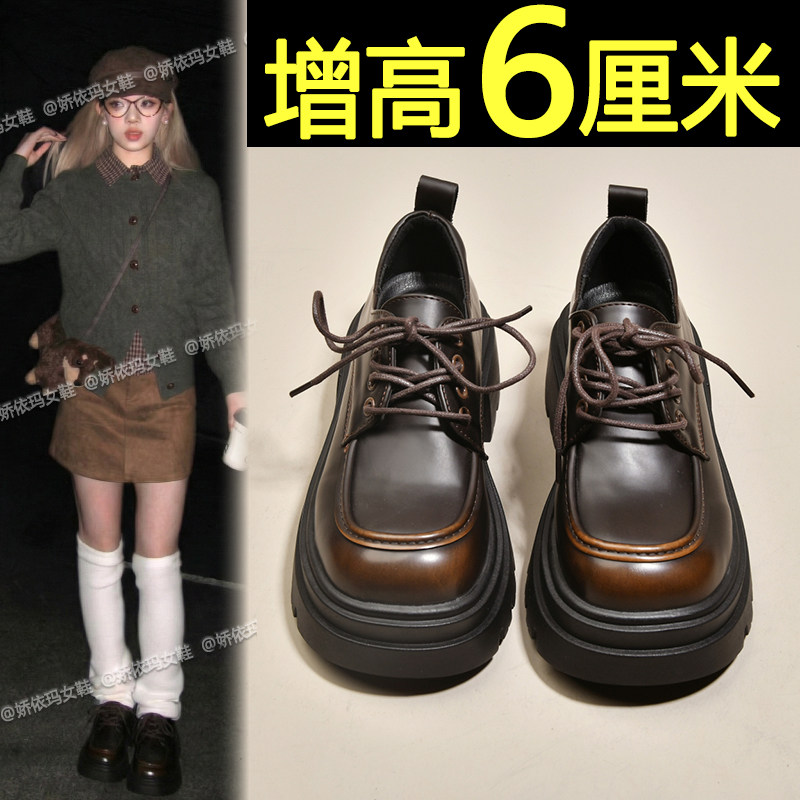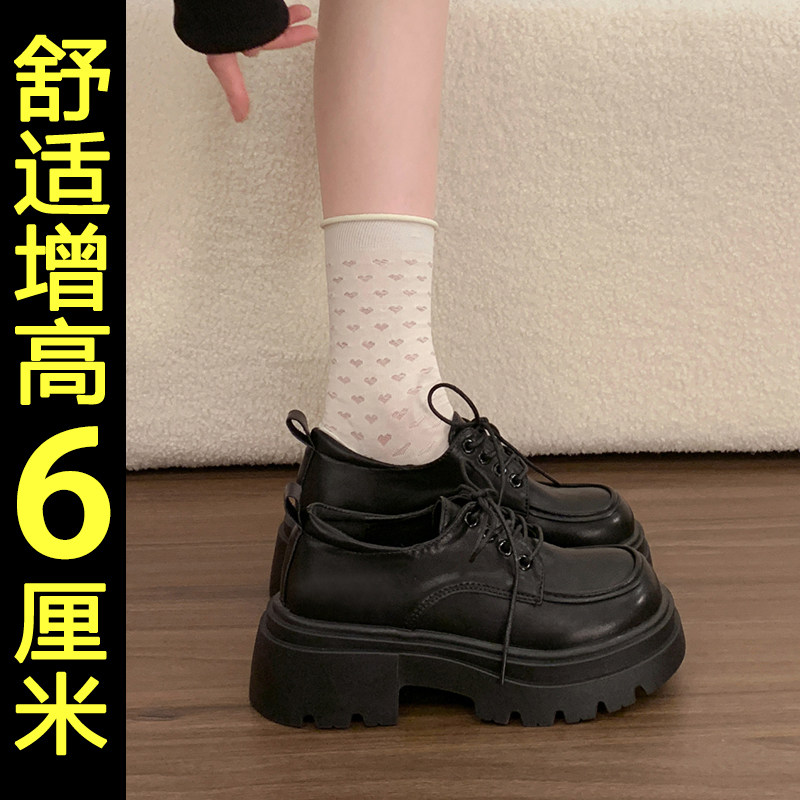 黑色棕色厚底乐福鞋增高小皮鞋女松糕底系带英伦风圆头复古JK单鞋
