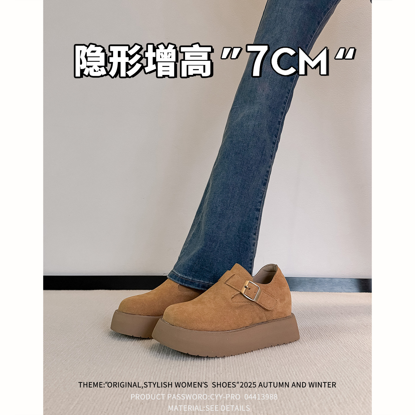 震地王2025秋季女鞋厚底内增高松糕鞋特价清仓处理库存鞋百搭单鞋
