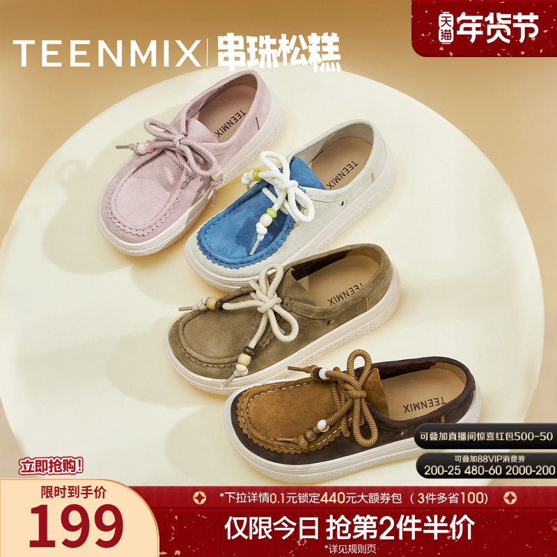 天美意串珠松糕复古厚底勃肯鞋袋鼠鞋女软底休闲鞋单鞋2025秋新款