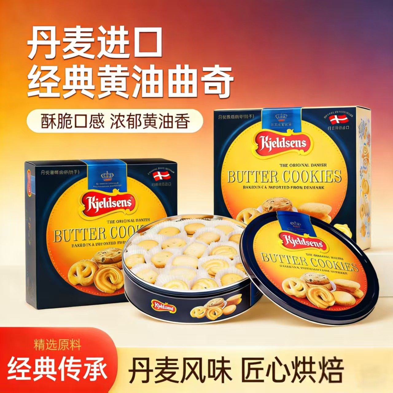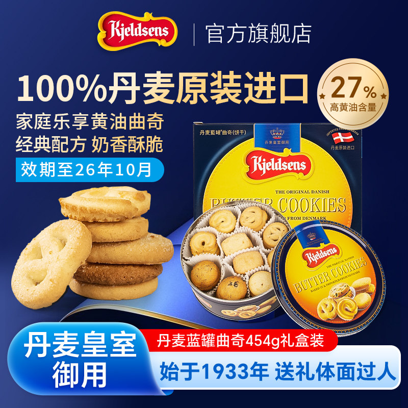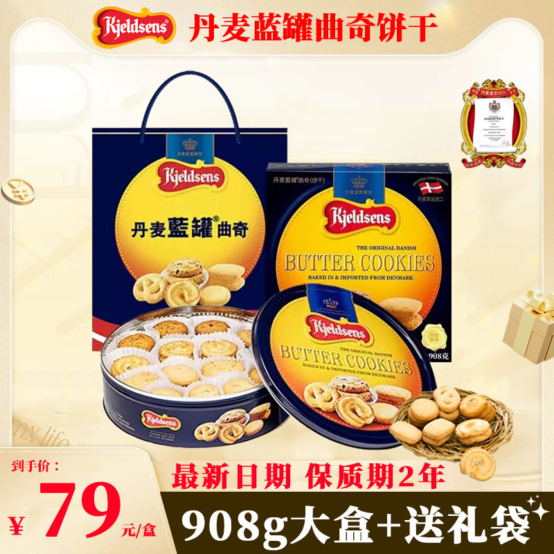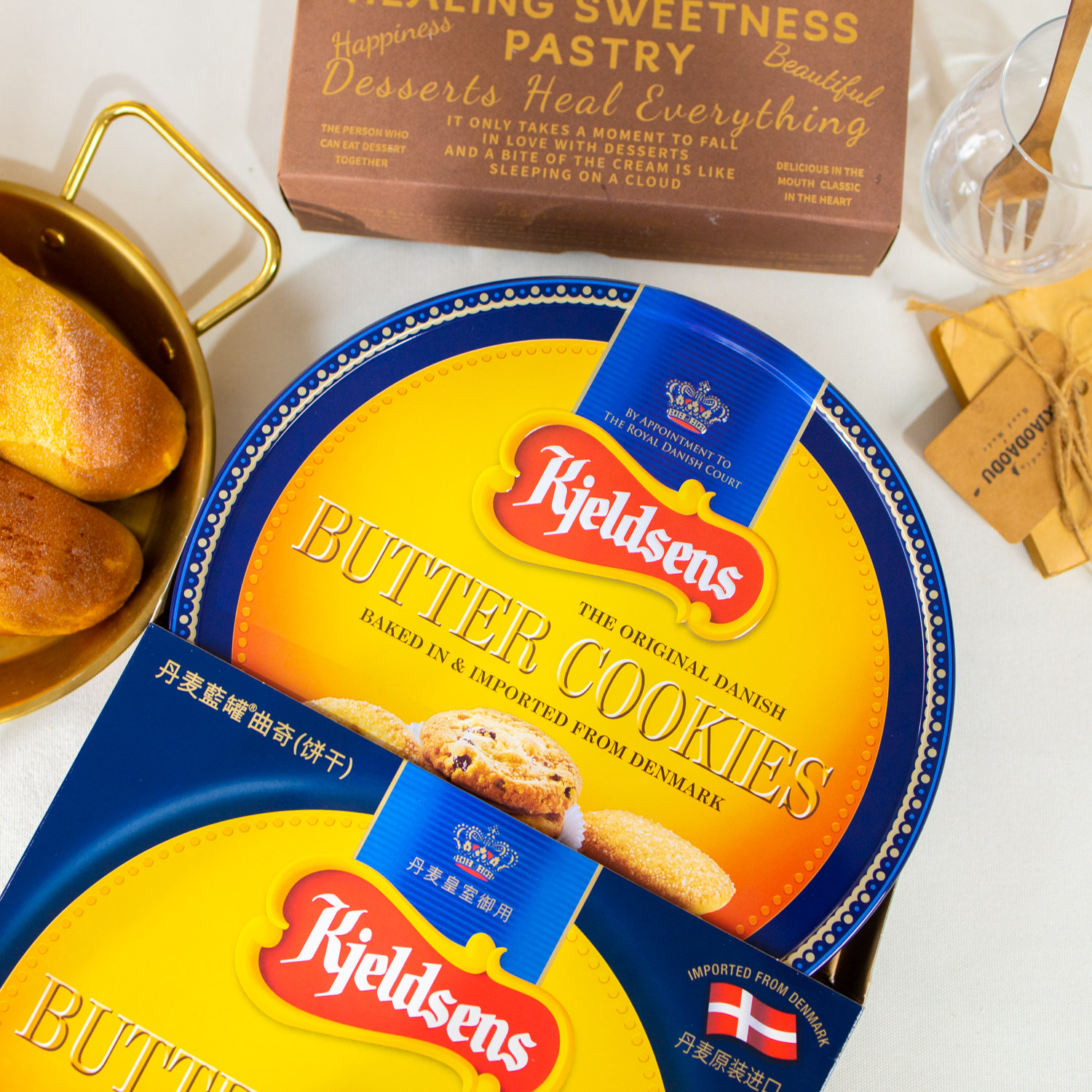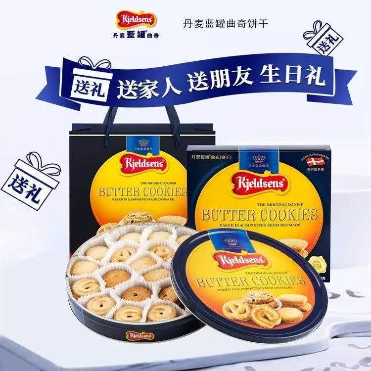 丹麦进口Kjeldsens蓝罐曲奇饼干黄油味盒装908g经典零食酥脆口感