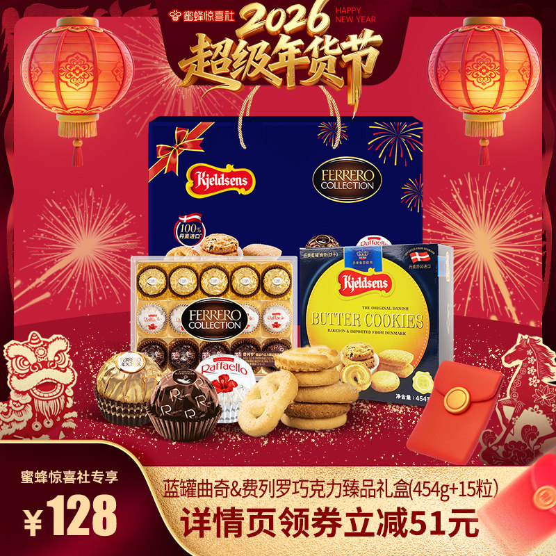 【超级年货节】蓝罐曲奇&费列罗巧克力臻品礼盒15粒+454g黄油饼干