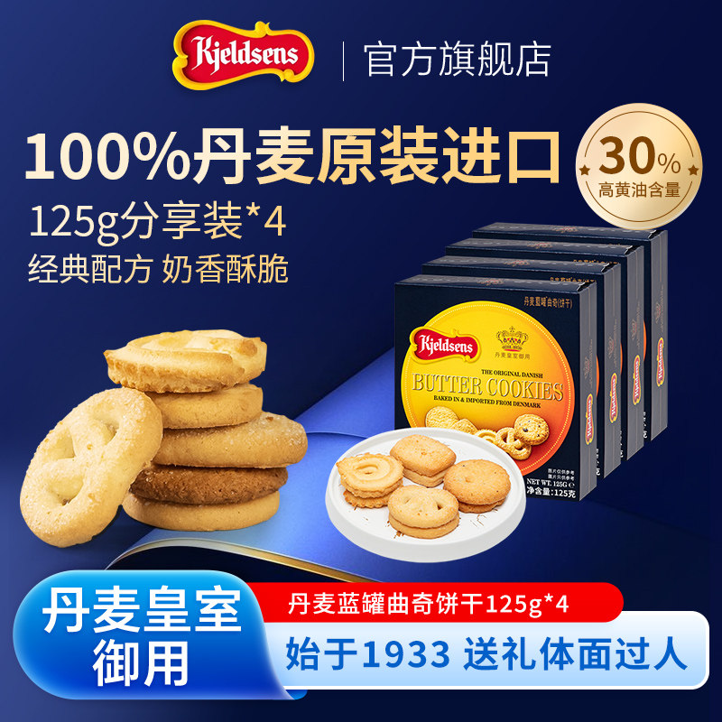 丹麦蓝罐曲奇125g*4盒原装进口黄油饼干囤货婚庆伴手礼下午茶点心