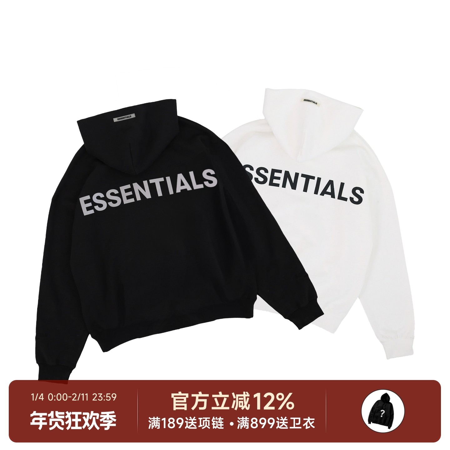 ESSENTIALS复线3M反光字母FOG潮牌高街宽松情侣连帽卫衣外套男女