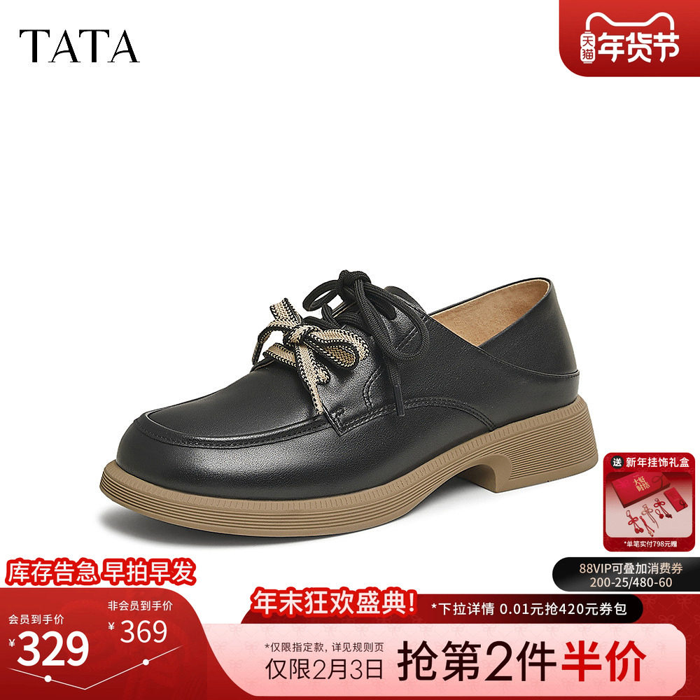 TATA他她女鞋2025黑色乐福鞋厚底英伦风小皮鞋单鞋牛津鞋CHY08AM6