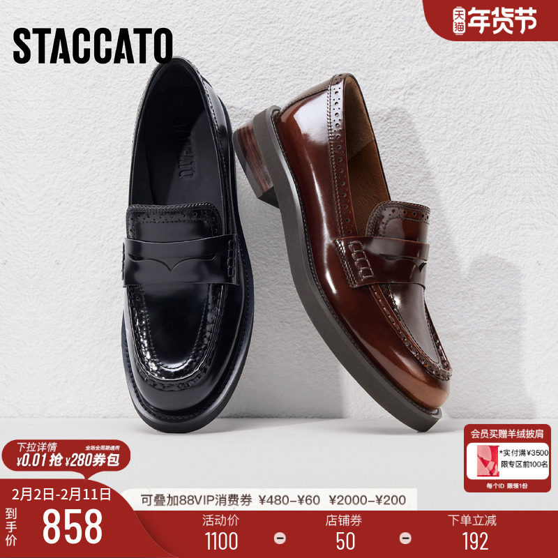 思加图新款牛津漫步乐福鞋一脚蹬小皮鞋单鞋女鞋9UL10AA5