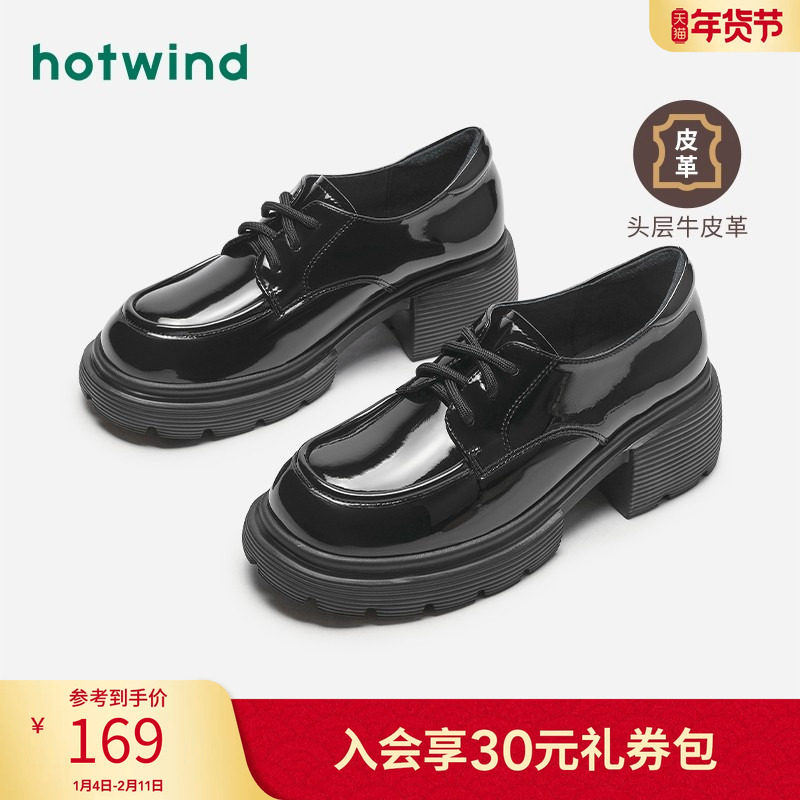 大东牛津鞋女鞋2026春季新款时尚休闲粗跟中跟圆头系带纯色Q0013