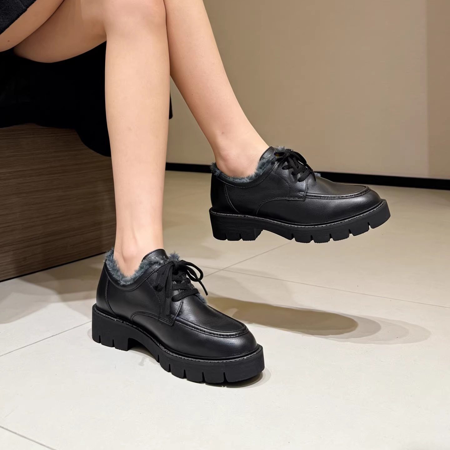德国CAPRICE凯蝴蝶女鞋秋冬新品系带休闲牛皮厚绒厚底牛津鞋23710