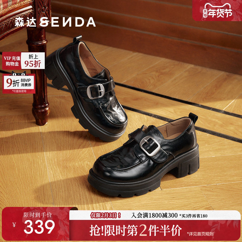 森达厚底乐福鞋女鞋26春新款真皮增高英伦风通勤黑色单鞋牛津皮鞋