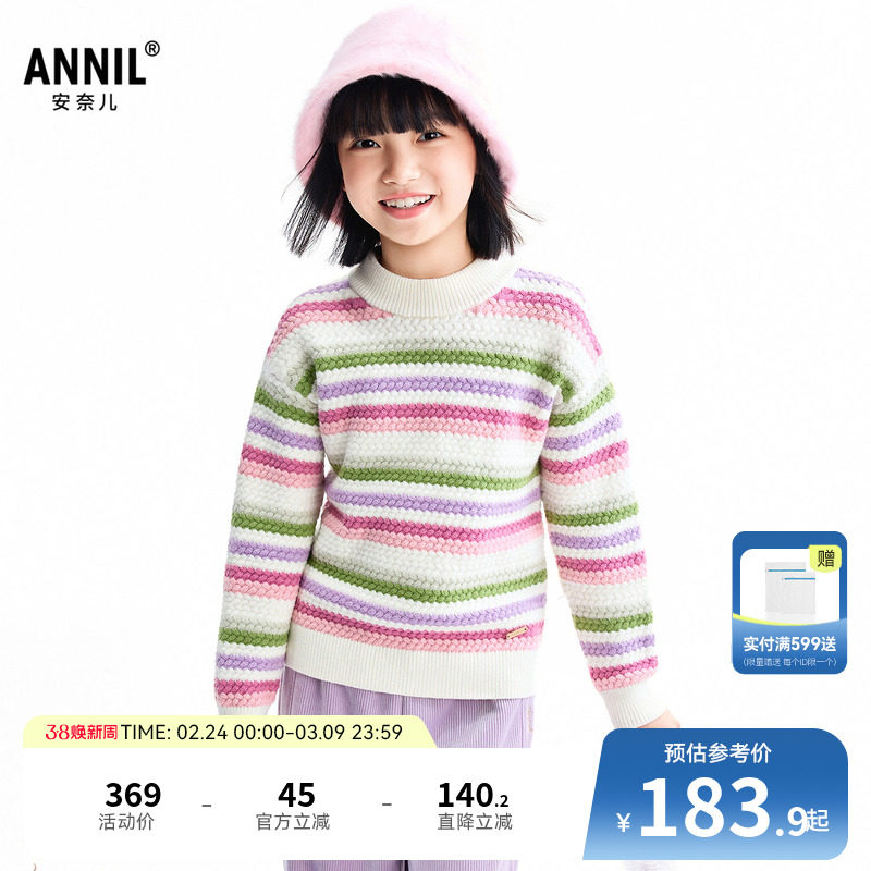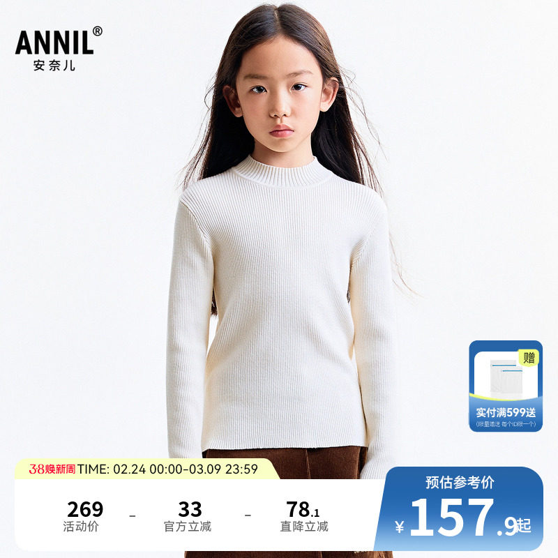 【商场同款】安奈儿童装男女童中领毛衣针织衫冬新款AM544060