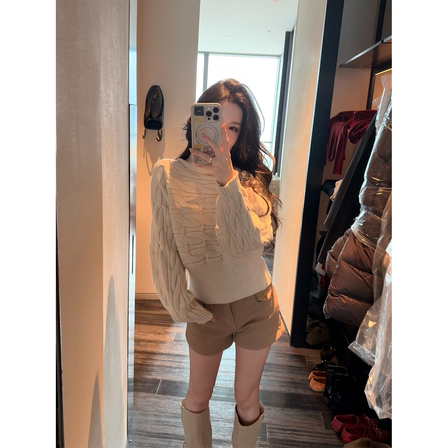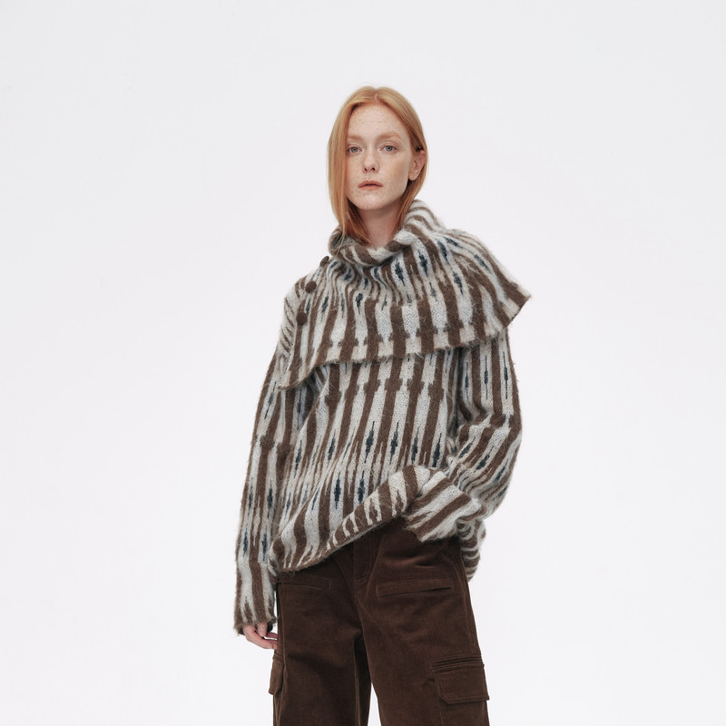01/06 10AM 徐琳「星夜之吻」小高领翻领绞花竖坑条收腰廓形毛衣