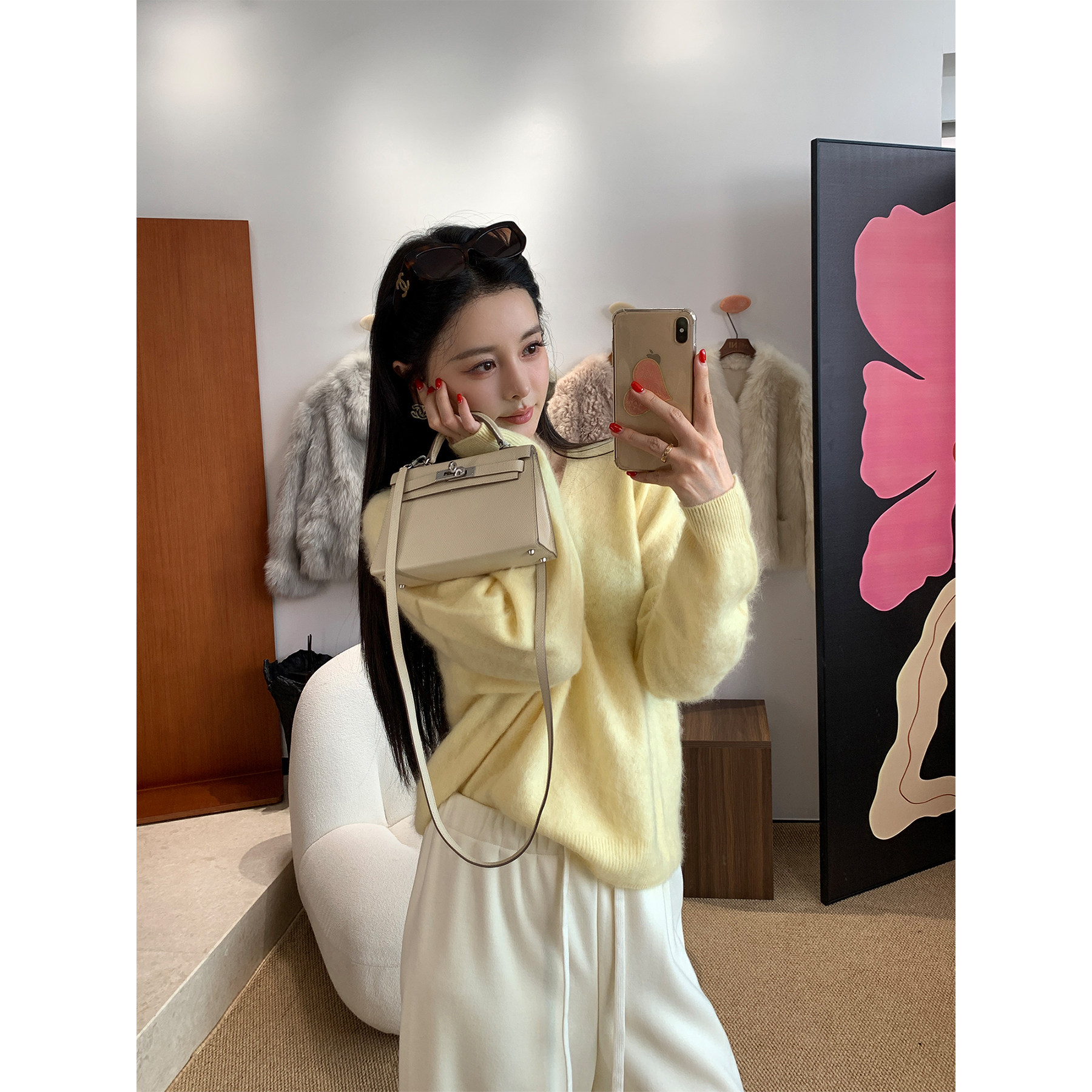 12/2 10AM 徐琳「暖冬小羊」v领廓形绵羊毛山羊绒拉毛多色毛衣